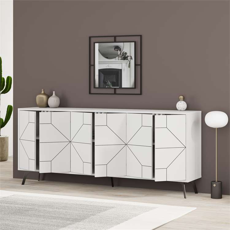 ✅ Geometrijski dizajn na vratima – Vrata ormarića krase diskretne, ali upečatljive geometrijske šare, koje dodaju moderan i umjetnički akcent cjelokupnom dizajnu, čineći komodu pravim dekorativnim elementom.