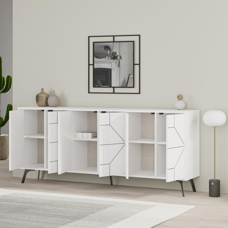 Tražite komodu koja će unijeti moderan stil, izobilje prostora za pohranu i suptilan dizajn u vaš dom? Naša Komoda Dune 181 cm je savršeno rješenje! Sa svojim horizontalno postavljenim ormarićima, dostupna u dvije popularne boje, i jedinstvenim geometrijskim detaljima na vratima, donosi organizaciju i stil u svaku prostoriju – idealna za dnevni boravak, spavaću sobu ili trpezariju.