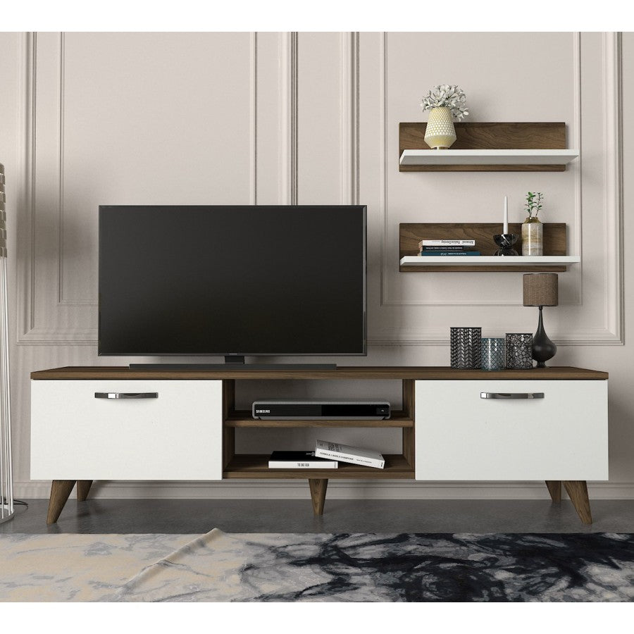 ✅ Prostrana pohrana – Komoda nudi dva ormarića s po jednim vratima na svakoj strani glavne jedinice, savršene za diskretno odlaganje. U sredini se nalaze dvije otvorene police, idealne za multimedijalne uređaje, konzole ili dekoracije.
