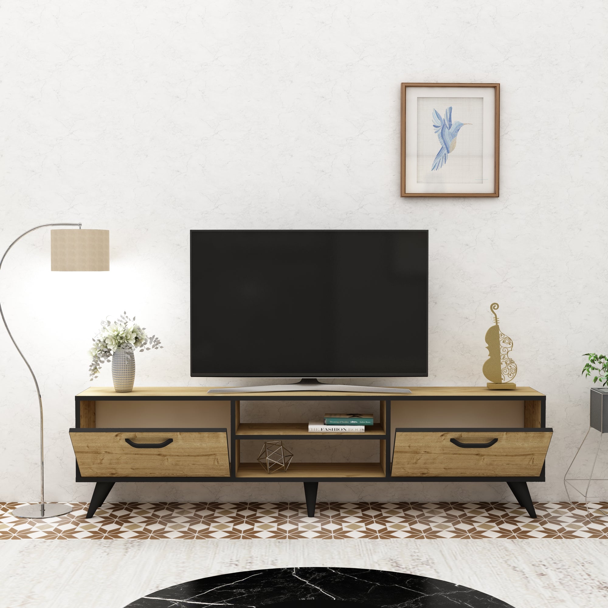 ✅ Dizajn sa svrhom – dvije fioke sa strane i dvije otvorene police u sredini omogućavaju organizaciju i stil