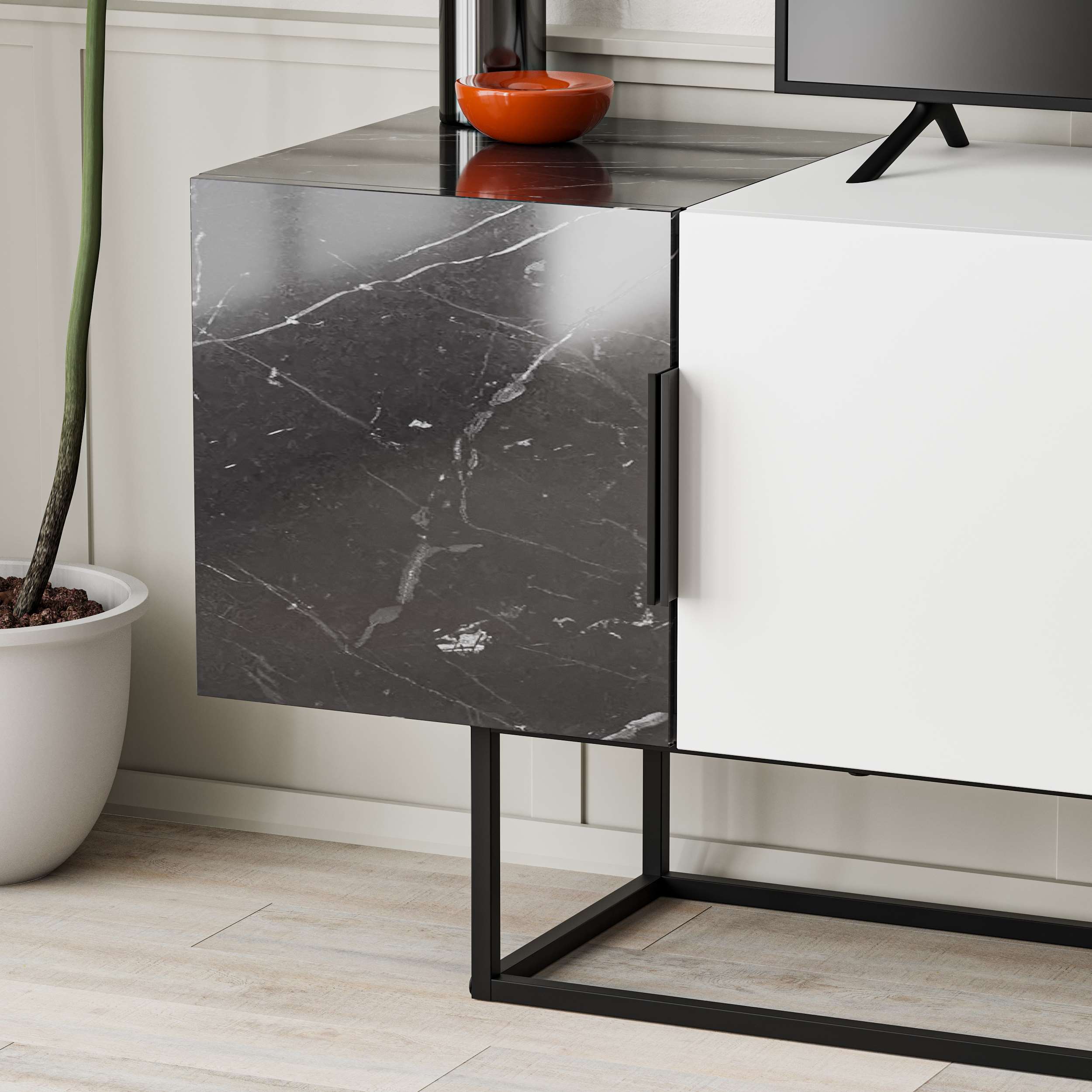 Tražite komodu za TV koja će unijeti luksuz, sofisticiranost i pametnu organizaciju u vaš dnevni boravak? Naša Komoda za TV Tontini je savršeno rješenje! Sa svojom jedinstvenom kombinacijom Carrara i crnog mermera s bijelim akcentima, te funkcionalnim ormarićima, donosi eleganciju i stil u vaš medijski centar, pretvarajući ga u umjetničko djelo.