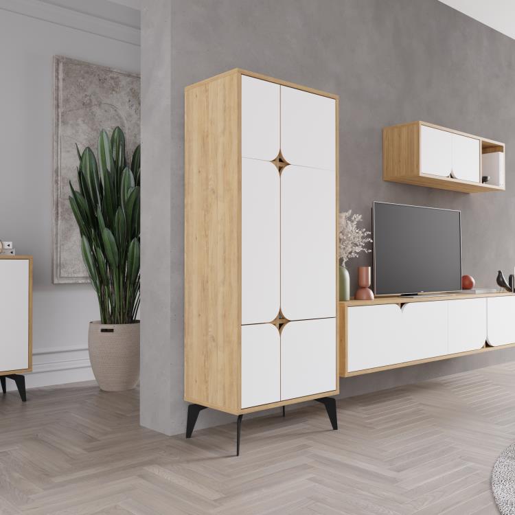 Tražite ormar koji će unijeti inovativan dizajn i obilje prostora za pohranu u vaš dom? Naš Ormar Spark je savršeno rješenje! Sa svojom elegantnom sonomo-bijelom kombinacijom, vertikalno postavljenim ormarićima i jedinstvenim dizajnom vrata koji stvara zvjezdaste oblike, donosi organizaciju i stil u svaku prostoriju.