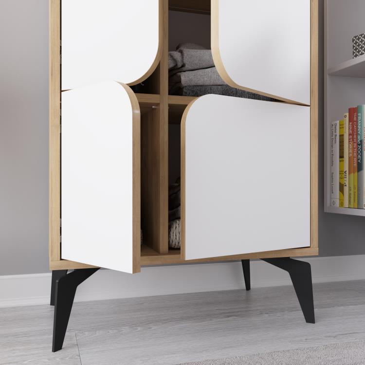 ✅ Stabilnost s modernim nogama – Ormar stoji na četirima čvrstim crnim nogama na dnu, koje pružaju izvrsnu stabilnost i doprinose modernom izgledu cjelokupnog komada namještaja.