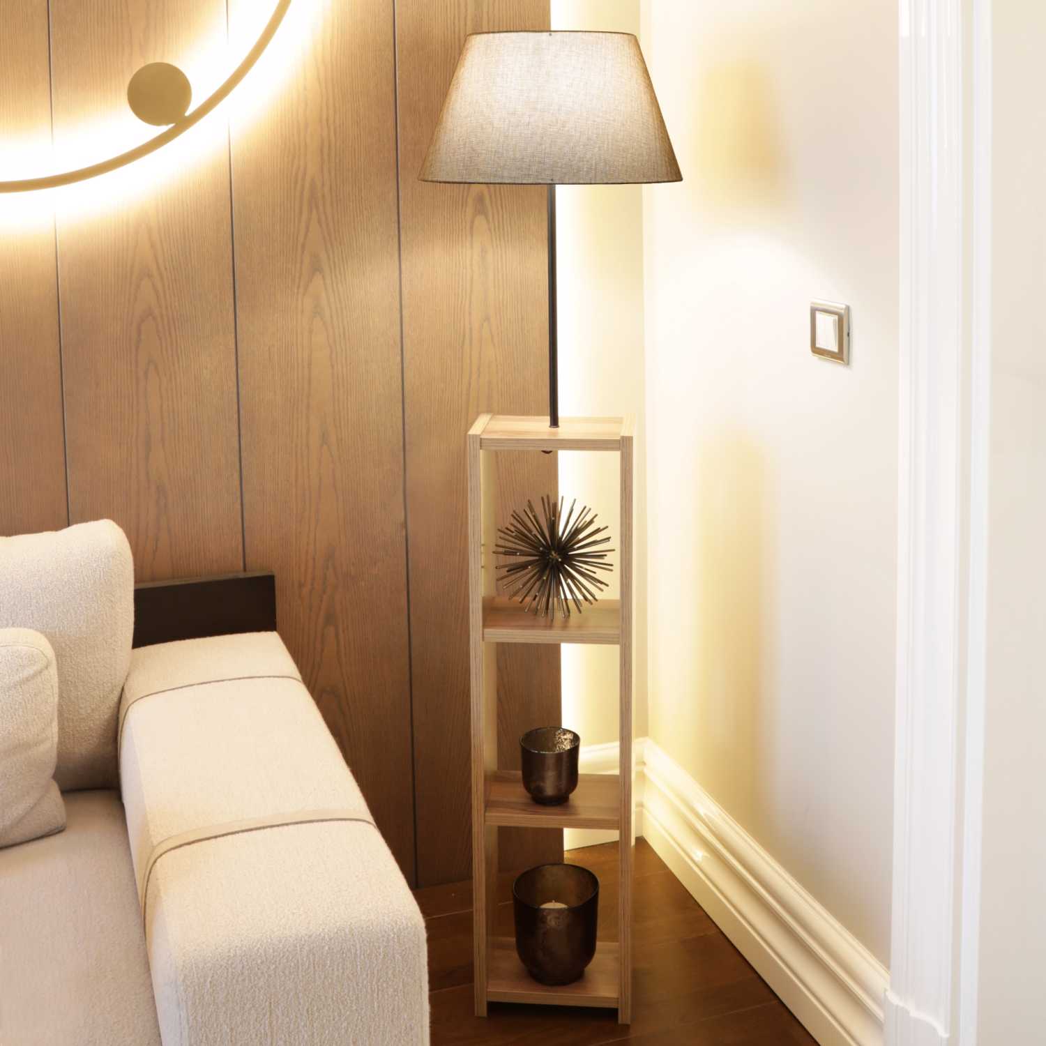 ✅ Pametan prostor za pohranu – postolje lampe sadrži tri savršeno poravnate police na visini od 90 cm, koje imitiraju toplo, tamno smeđe drvo. Idealne su za odlaganje knjiga, okvira za slike, dekoracija ili čak šalice kave, kombinirajući rasvjetu i organizaciju u jednom.