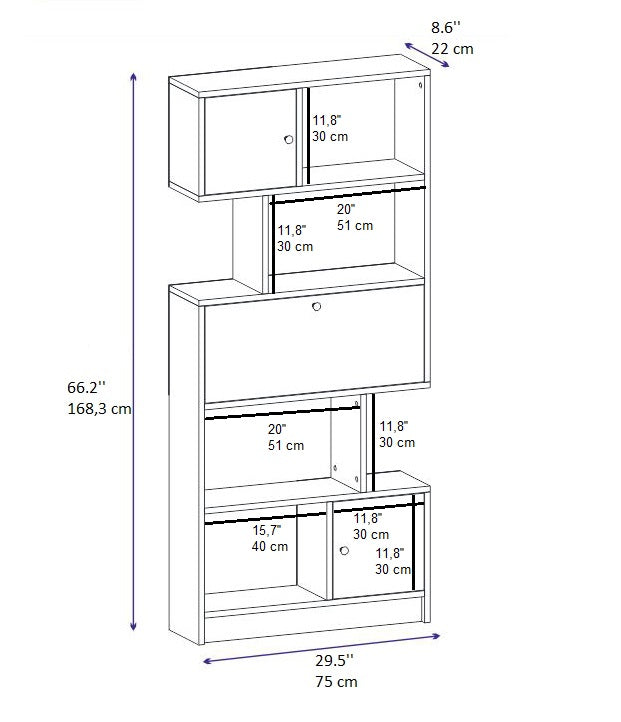 ✅ Dimenzije: 168,3 x 75 x 22 cm – visoka i tanka, idealna za zidne prostore bez gužve