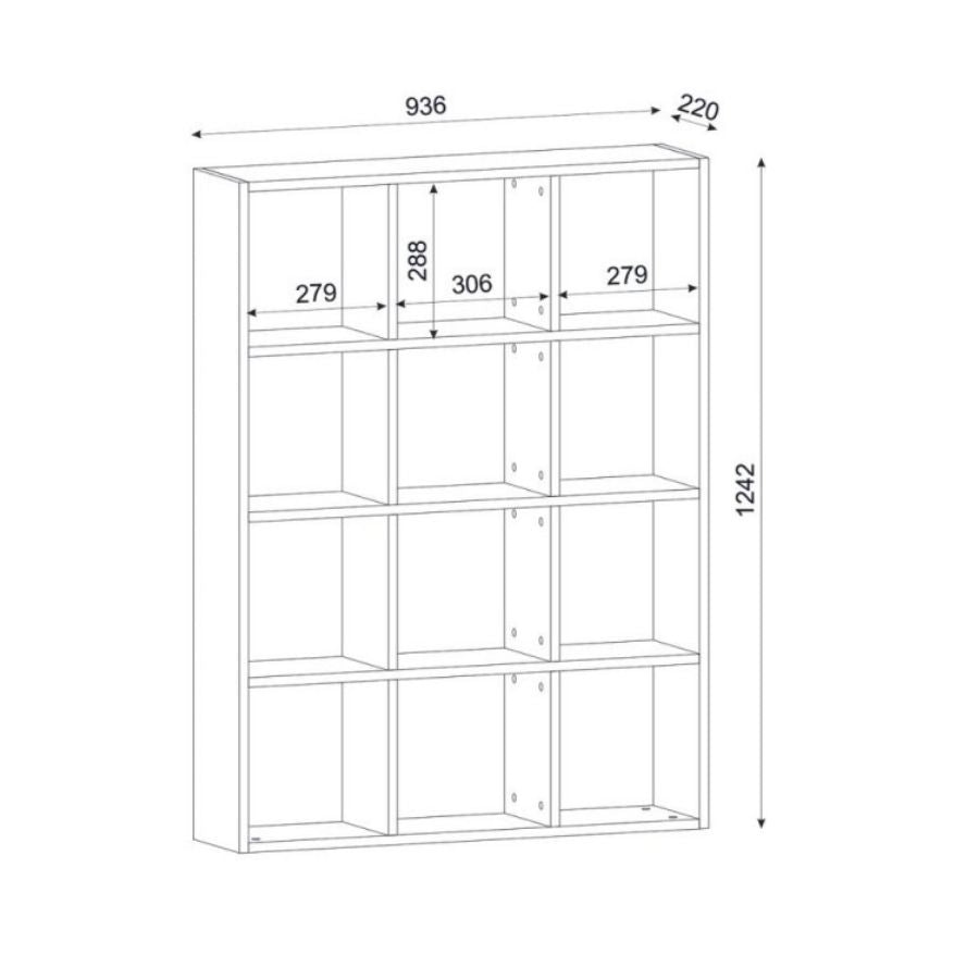✅ Impresivan broj polica – polica se sastoji od ukupno 12 polica, raspoređenih u tri reda po četiri jednake, kvadratne police. Ovaj raspored stvara savršeno simetričnu i urednu strukturu, idealnu za organizaciju raznovrsnih predmeta.