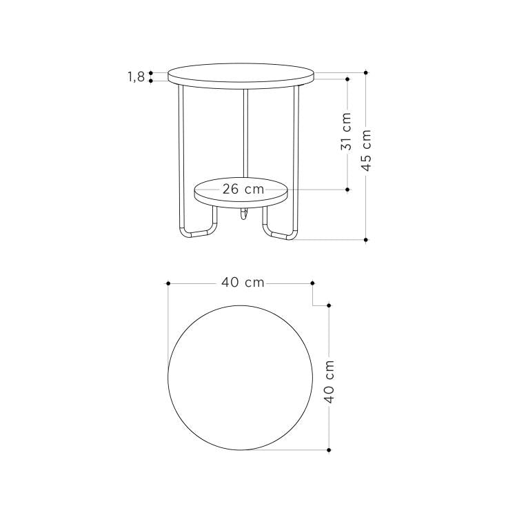 ✅ Elegantan kružni oblik – Ploča stola je kružnog oblika promjera 40 cm, što doprinosi mekšem i modernijem izgledu i čini ga savršenim za manje prostore. Idealno za lampu, šolju kafe, knjigu ili manju dekoraciju.