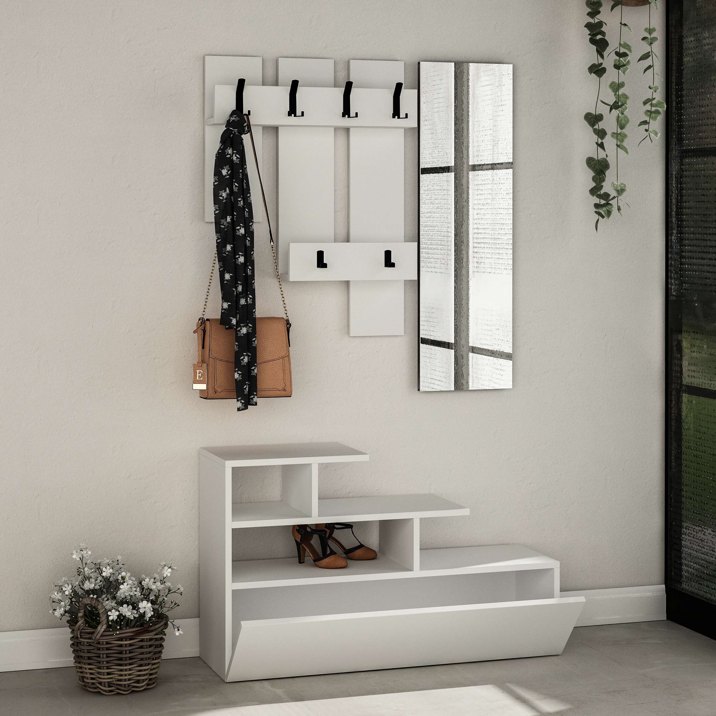 Predsoblje Vesty donosi kompletno rješenje za svaki hodnik, kombinujući police, vješalice i ogledalo u elegantnoj bijeloj boji. Dizajnirano da zauzme malo prostora, a ponudi maksimalnu funkcionalnost.