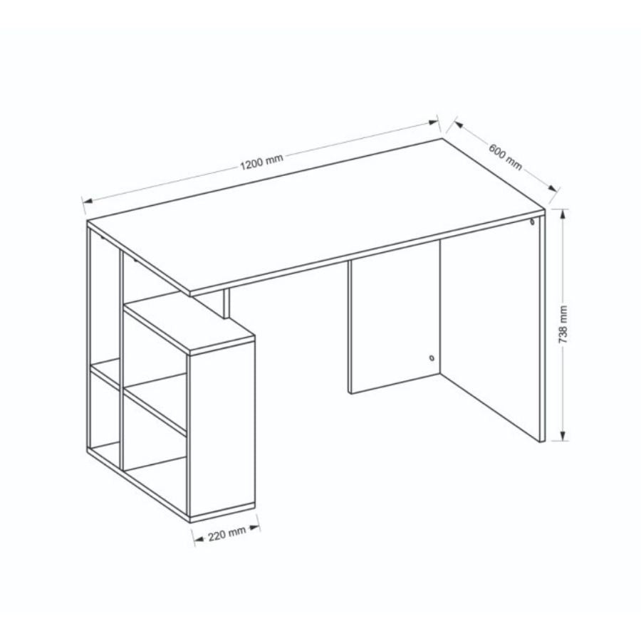 Labran kombinuje bijelu površinu stola sa orah bojom na bočnim policama. Pet polica različitih veličina omogućavaju organizaciju svih radnih stvari.