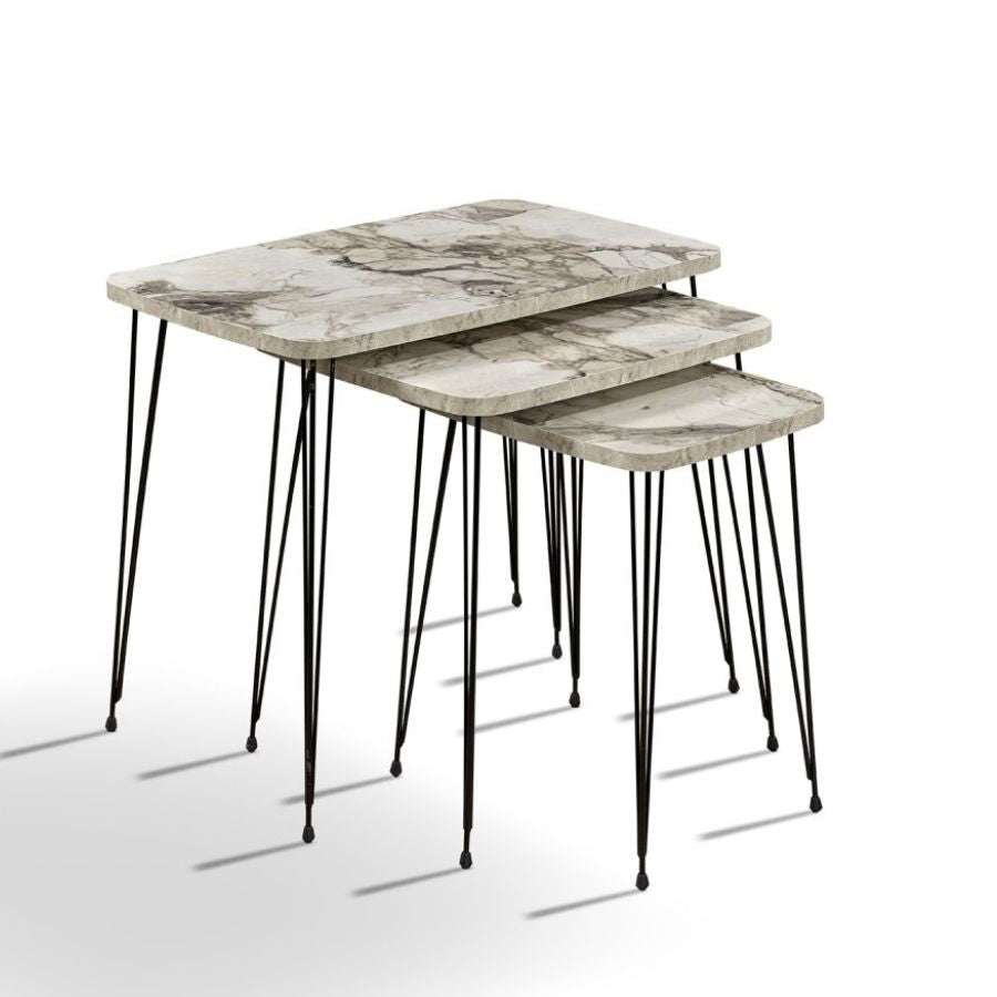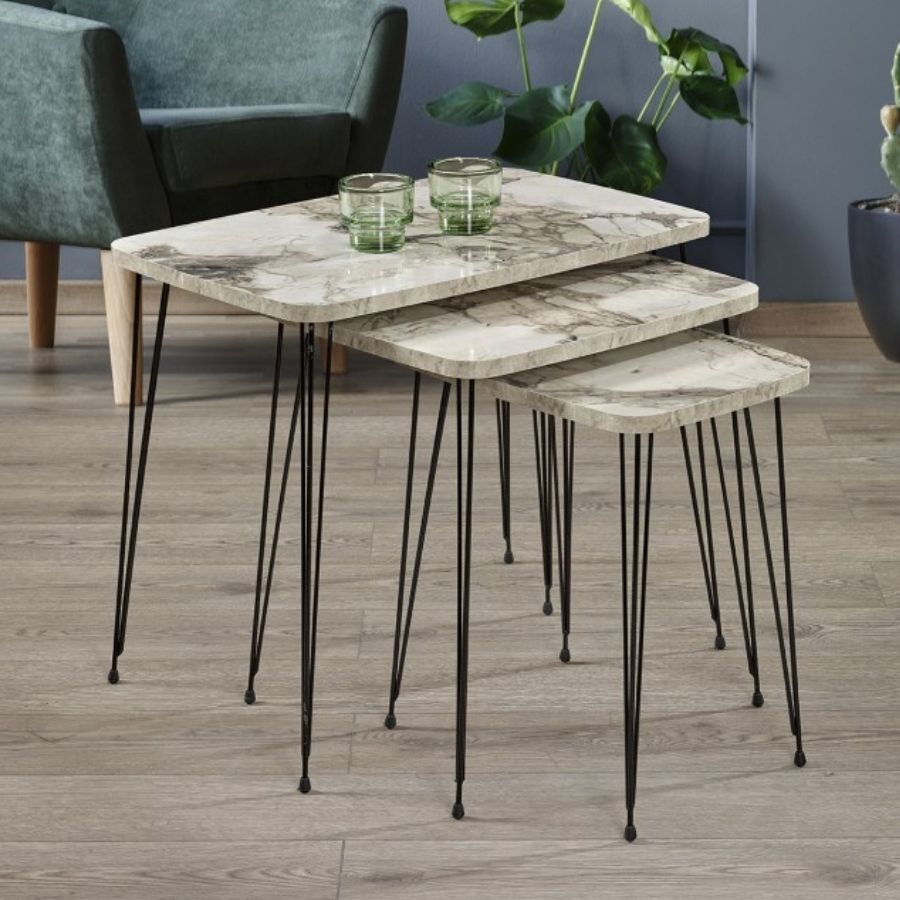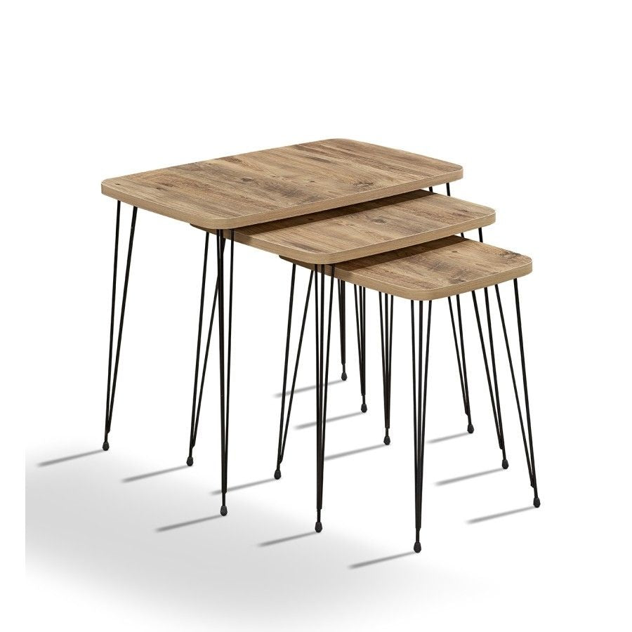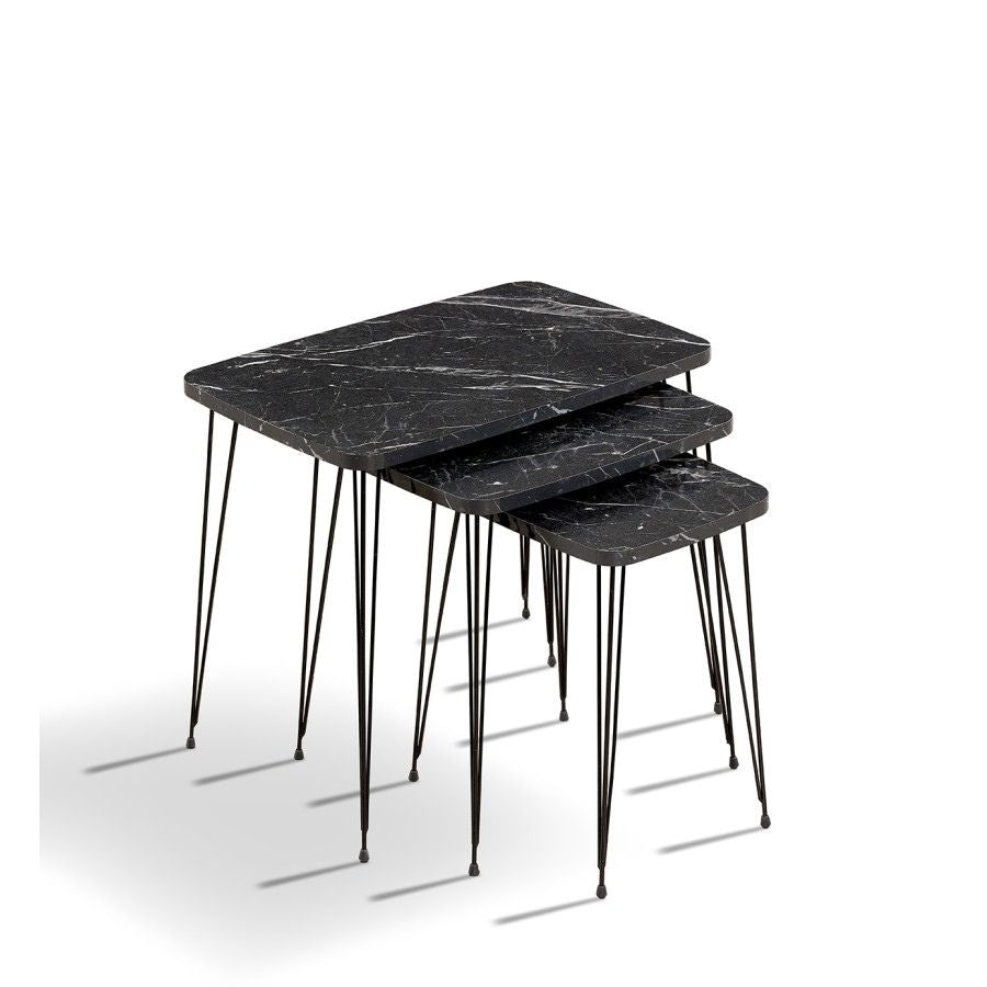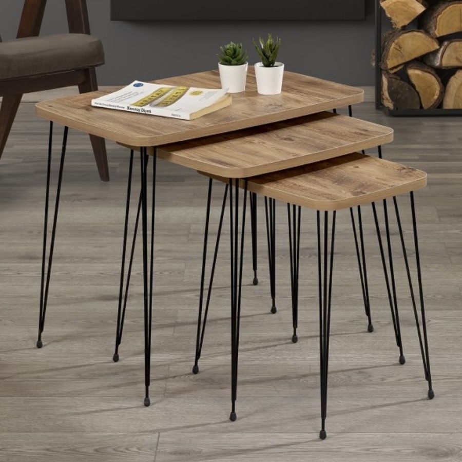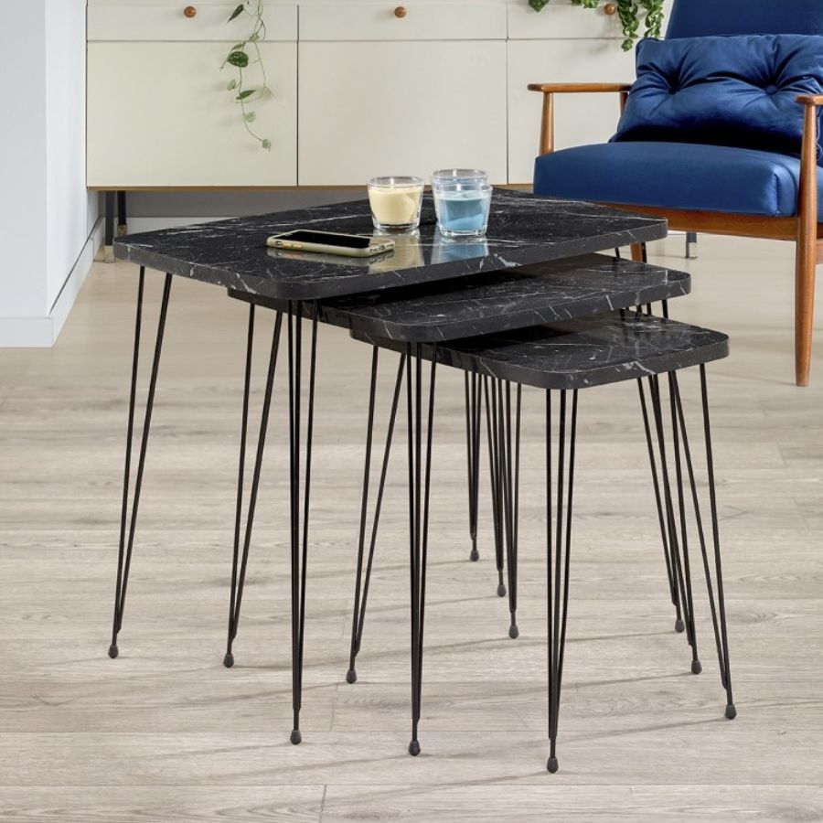 Ovaj set od tri stola koji se uklapaju jedan ispod drugog donosi pravougaoni oblik i četiri crne noge po komadu, idealno za organizaciju prostora.
