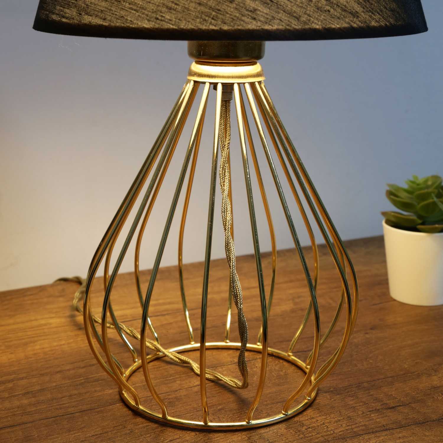 Crna lampa sa zlatnim postoljem – za luksuzan kontrast