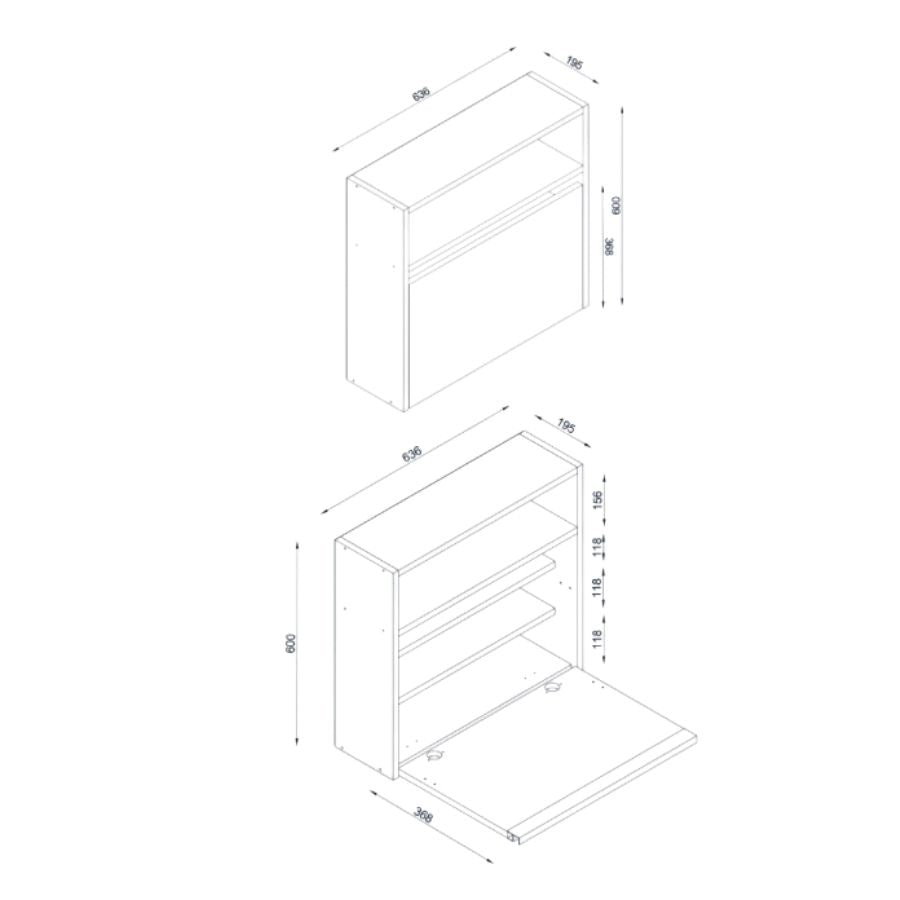 ✅ Kompaktan, ali funkcionalan – sto se otvara u maleni radni sto (dužina 368 mm), idealan za laptop i bilješke. Iznad radnog dijela nalazi se jedna praktična polica, dok se unutar sklopljenog ormarića kriju tri unutrašnje police za dodatno odlaganje, osiguravajući urednost i organizaciju.
