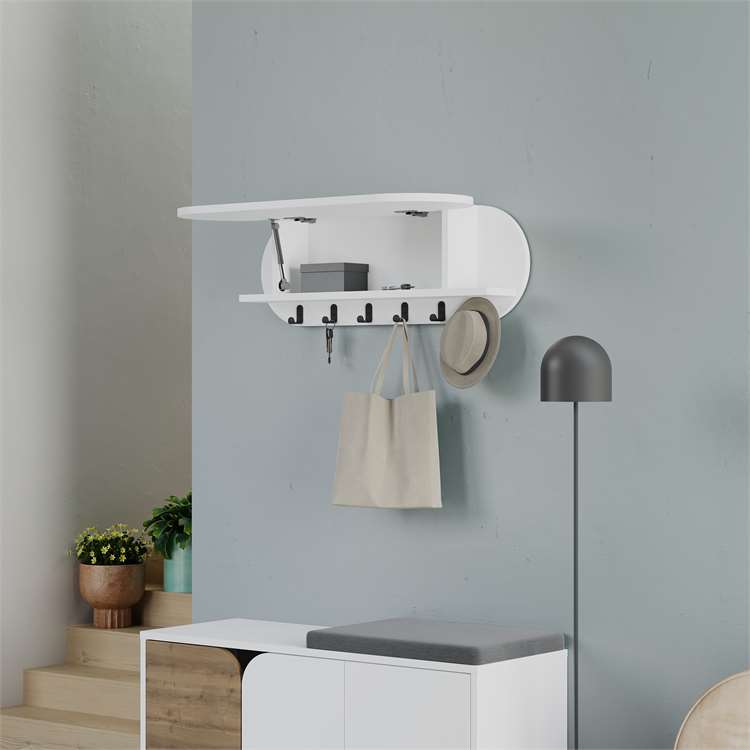 Želite unijeti eleganciju i funkcionalnost u svoj ulazni prostor, uz diskretnu pohranu? Naša Vješalica Kroma je savršeno rješenje! Sa svojim modernim dizajnom u obliku kapsule, čistom bijelom bojom i skrivenim kukama i pretincem, donosi urednost i sofisticiranost u svaki dom, idealna za jakne, torbe i sitnice.