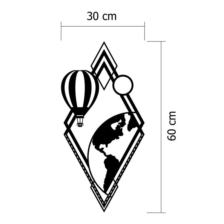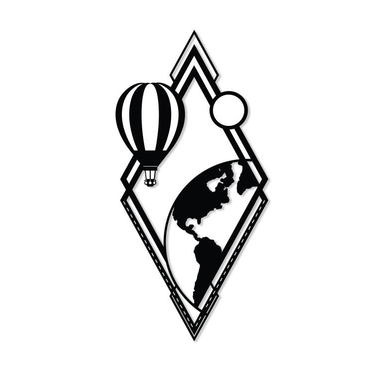 Unesite mistiku i duh avanture u svoj dom sa Zidnom dekoracijom From Earth! Ova jedinstvena crna dekoracija u obliku dijamanta donosi vizualnu priču o putovanjima i čudima svijeta, s globusom koji izranja s jedne strane i balonom na vrući zrak s druge, simbolizirajući istraživanje i slobodu.