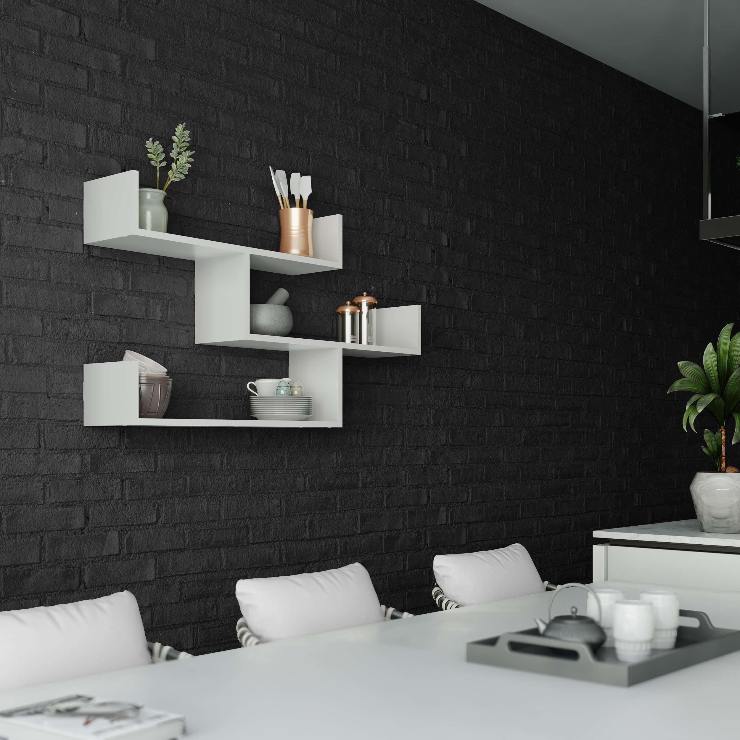 ✅ Upečatljiv asimetrični dizajn – s tri duže police koje nisu savršeno poravnate jedna iznad druge, već su promišljeno postavljene izvan centra, ova zidna jedinica stvara dinamičan i vizualno intrigantan izgled koji privlači pažnju.